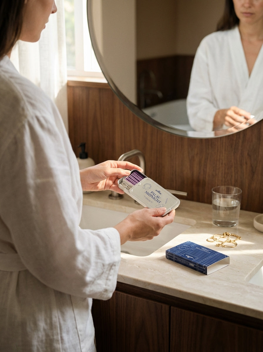 The scent finishes with sandalwood and musk, bringing warmth and depth, smooth, grounding, and quietly comforting. Overall, it’s a calm, evening-ready scent: fresh at first, then warm and enveloping. Designed to ease you into night without feeling heavy or overpowering.